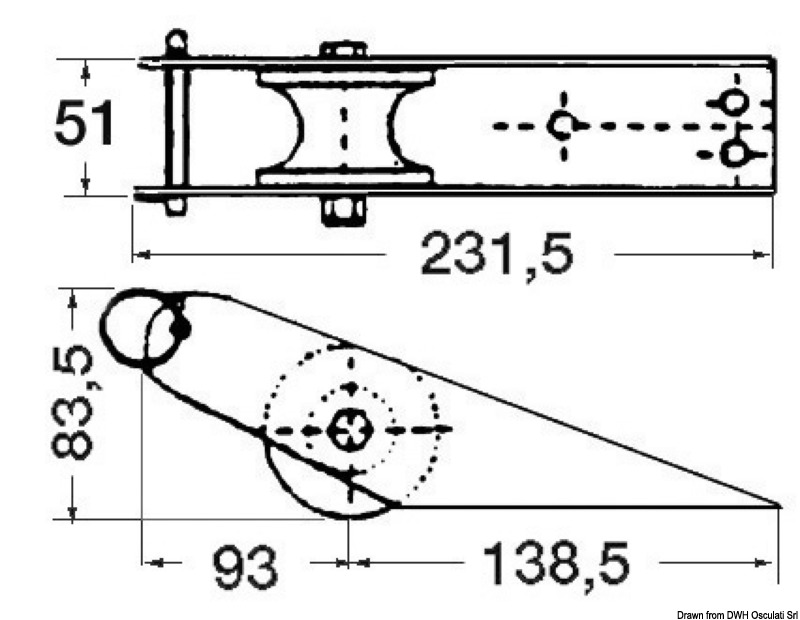 Musone di prua inox 232 x 51 mm